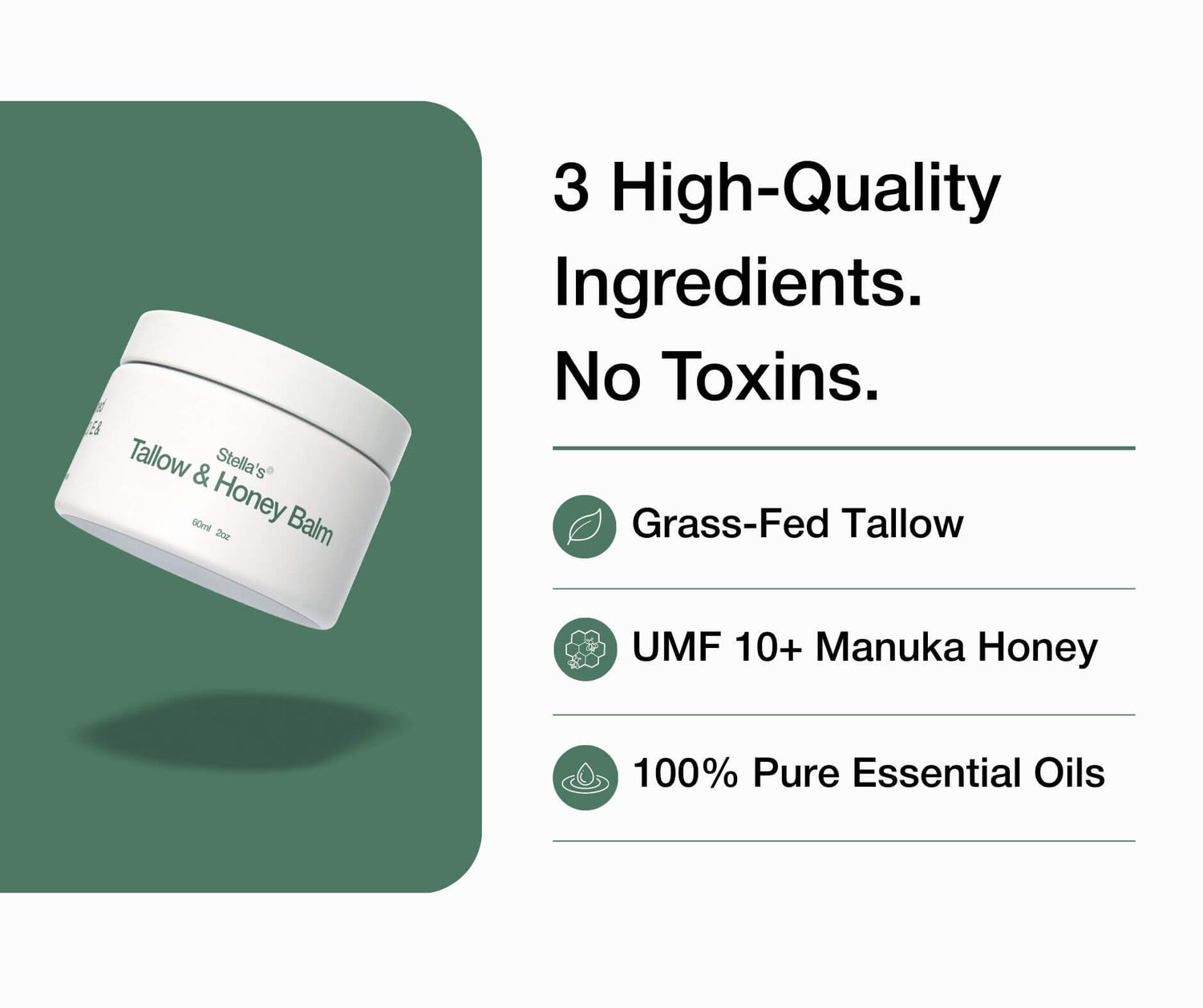 Experience the time-tested benefits of grass-fed tallow and Manuka honey. Our balm deeply nourishes and repairs dry, damaged skin, leaving it feeling soft, smooth, and naturally radiant.
